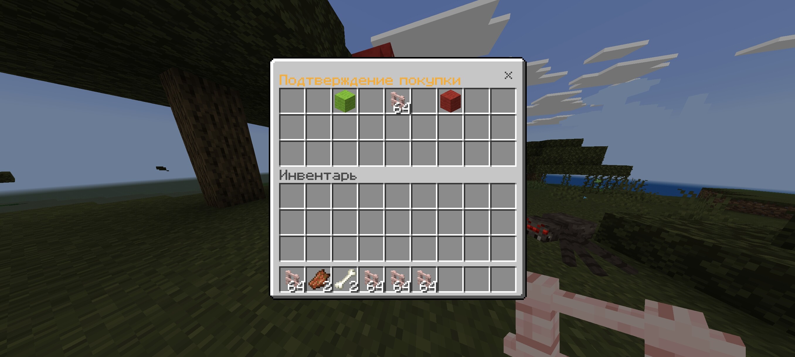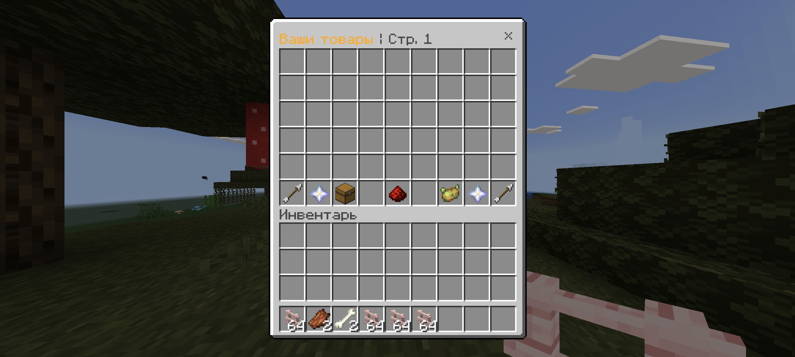 - GUI-рынок — покупка, подтверждение, навигация по страницам.