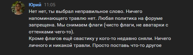 Удивляюсь как меня не захуесосили за цвета флага на аве