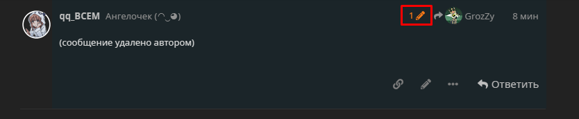По итогу у нас илюзия удалённое сообщение без карандаша