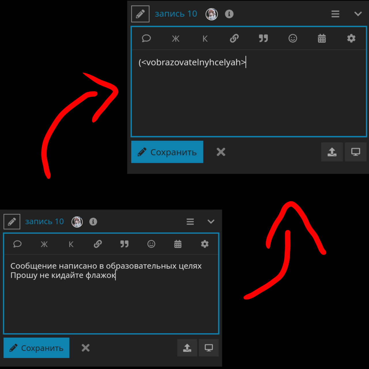 - Сохраните сообщение (делается это по причине того, что если сразу прописать фековое сообщение удаления, то с какой-то вероятностю карандаш появится)