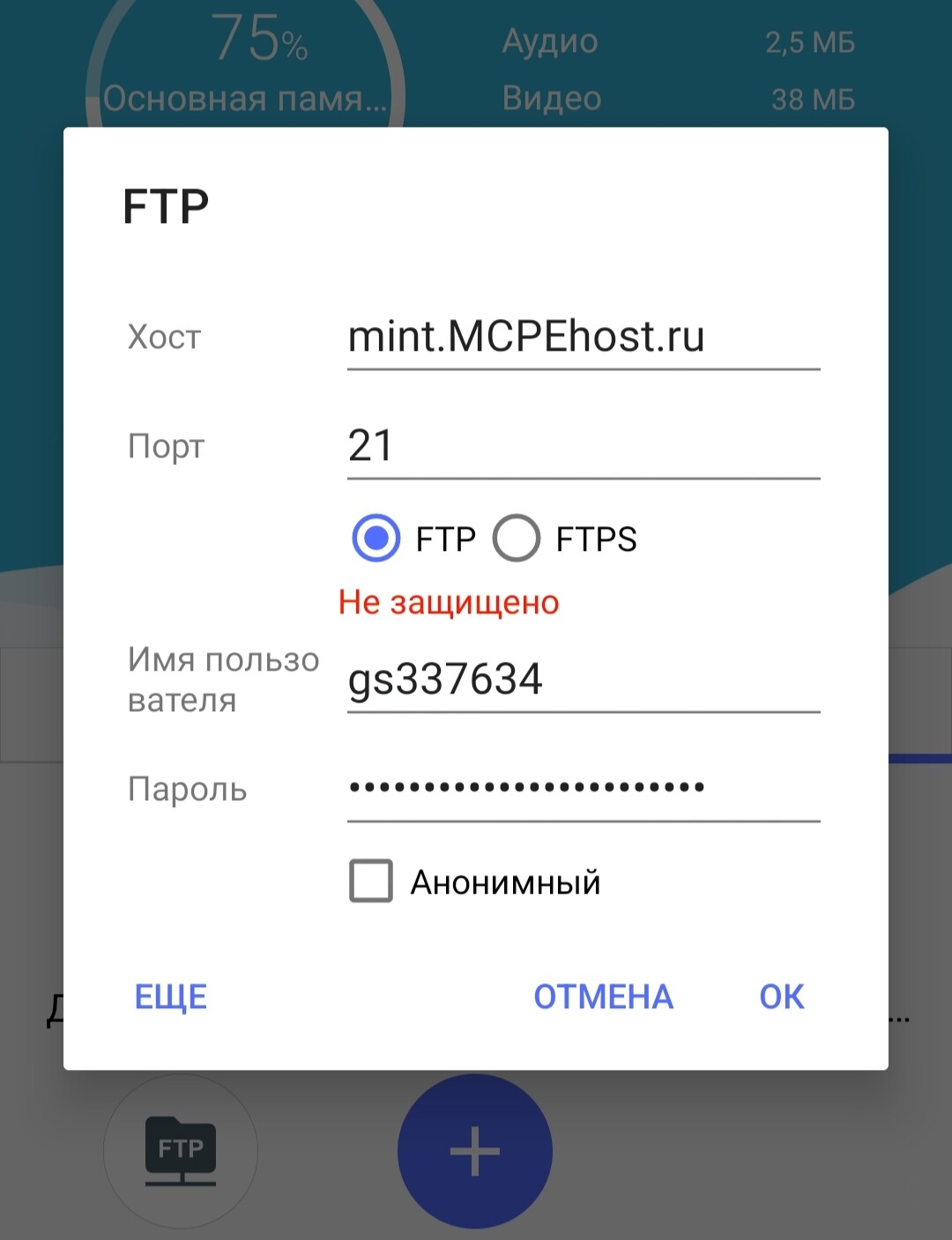 В порт ставь 21 если обычный ftp, или же 22 если sftp.