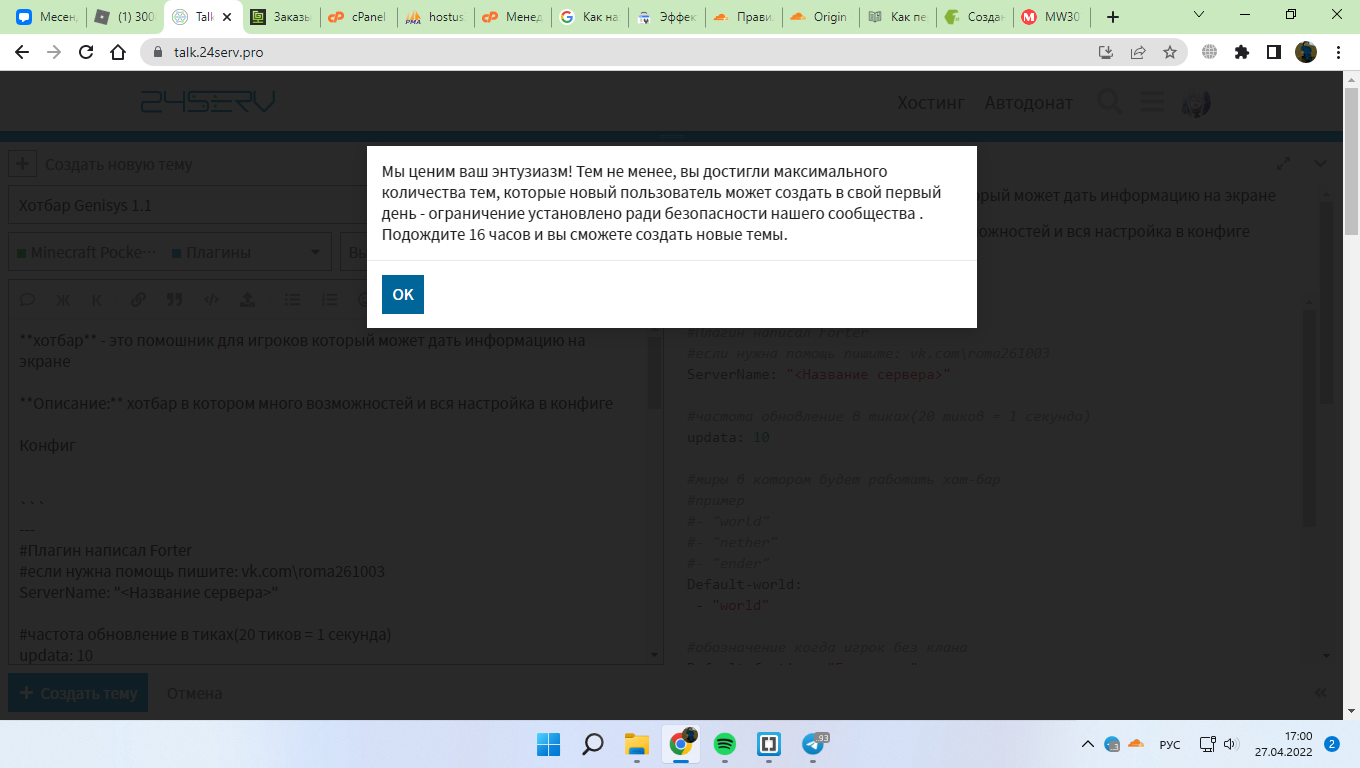За каждый опубликованный пост с плагином, ядром, картой, инструкцией или другими полезными файлами и советами для владельцев серверов будут зачисляться баллы.
