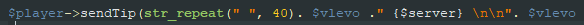 $player->sendTip($vlevo."я нахожусь слево!\n".$pravo."А я с право");