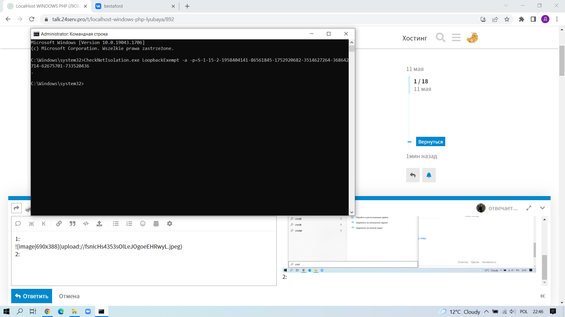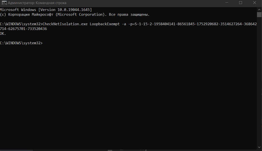 CheckNetIsolation.exe LoopbackExempt –a –p=S-1-15-2-1958404141-86561845-1752920682-3514627264-368642714-62675701-733520436