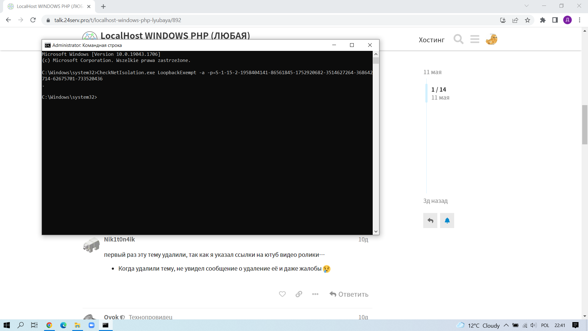 Когда удалили тему, не увидел сообщение о удаление её и даже жалобы