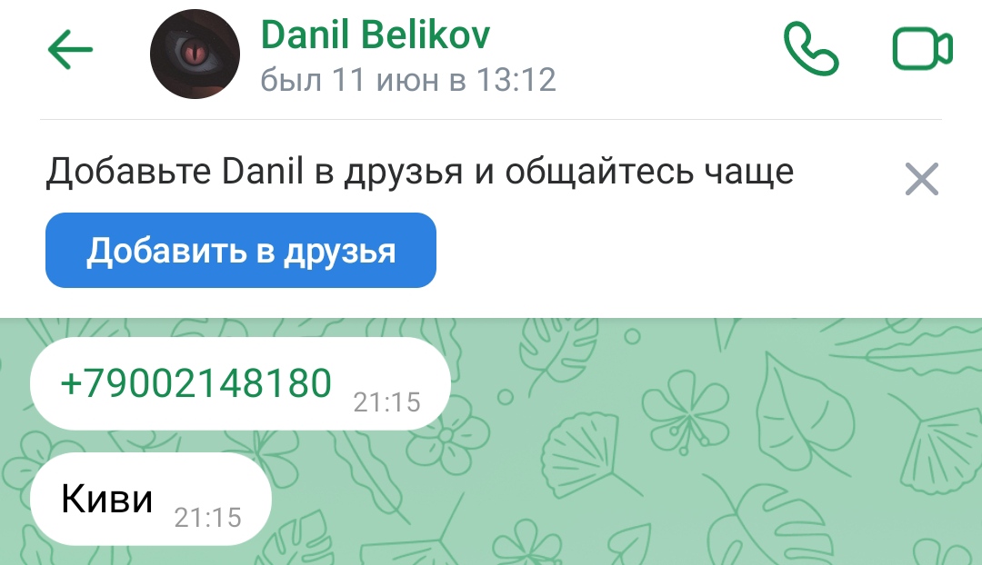 Вот его, ещё данные. Номер телефона и номер карты! А то профиль может заменит, а по карте и номеру телефону, хотя бы новички увидят.