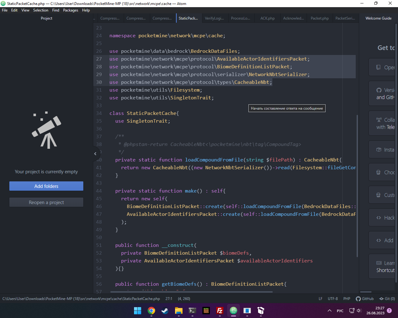 да и протоколы → \pocketmine\network\