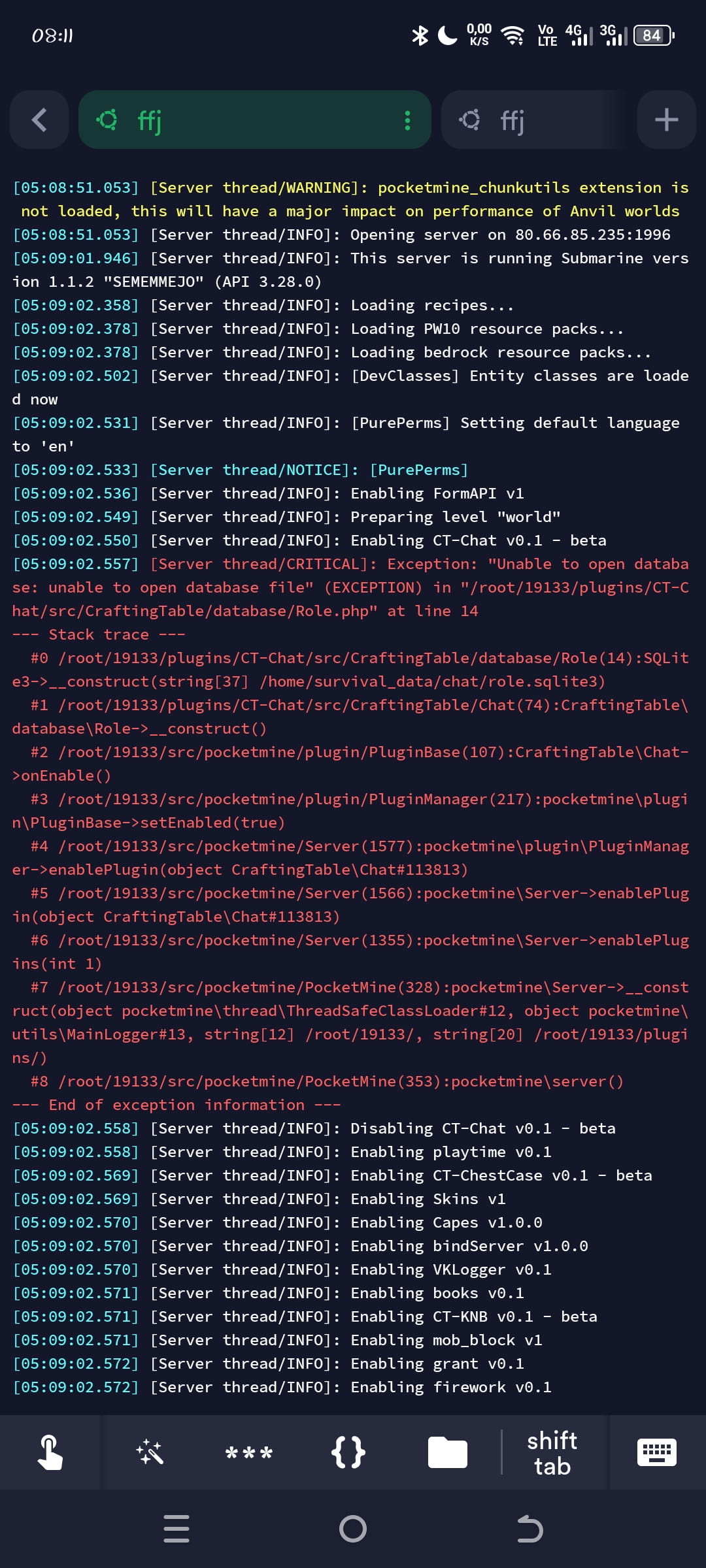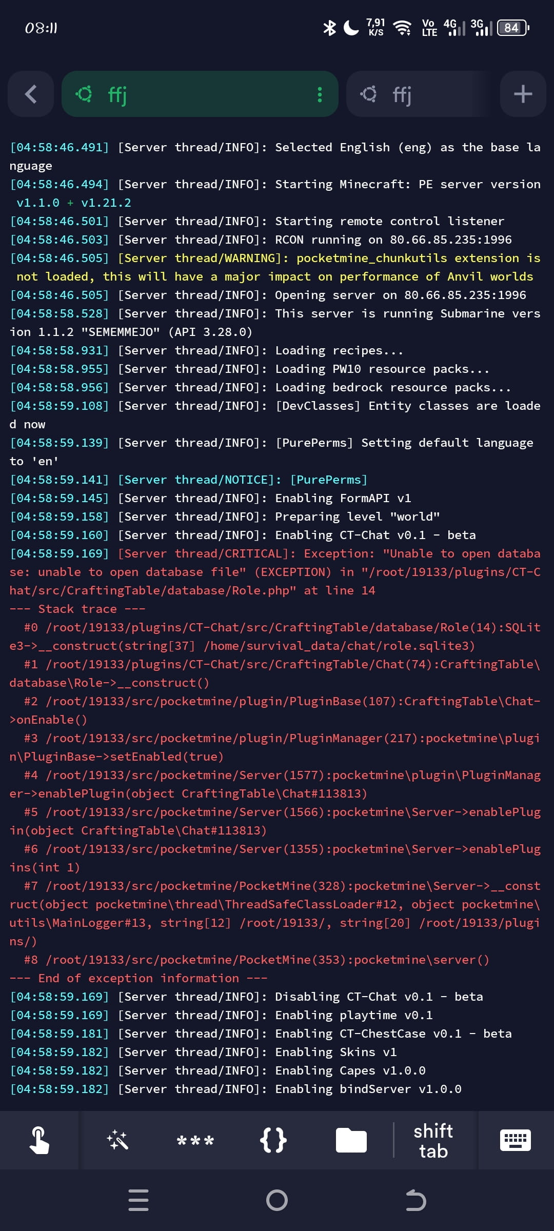 Я выше тебе писал что надо исправлять плагин. Твой CT-Chat хочет открыть БД /home/survival_data/chat/role.sqlite3 которого разумеется не существует. Если ты решил взять слитую сборку, вместо того чтобы написать свою, то готовься чинить все ошибки сам.