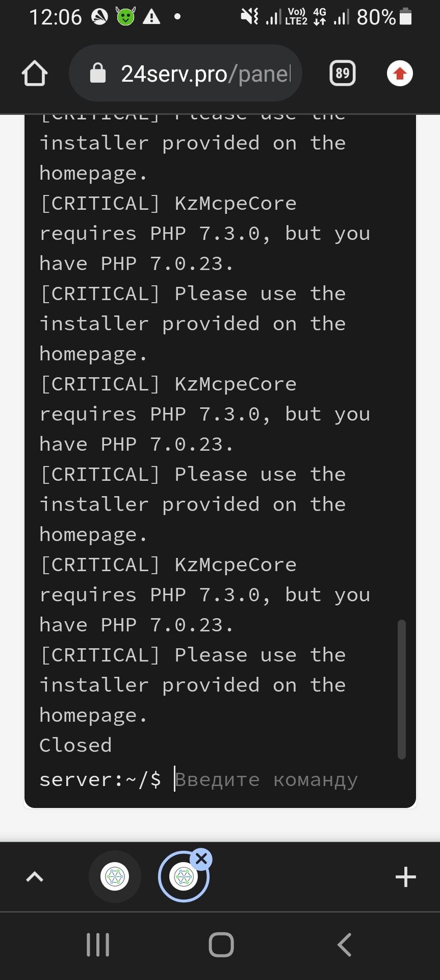 У ядру нужен 7.3 бинарник но я ставил тот самый 7.3 но в консолье дает такое ошибку, как исправить?