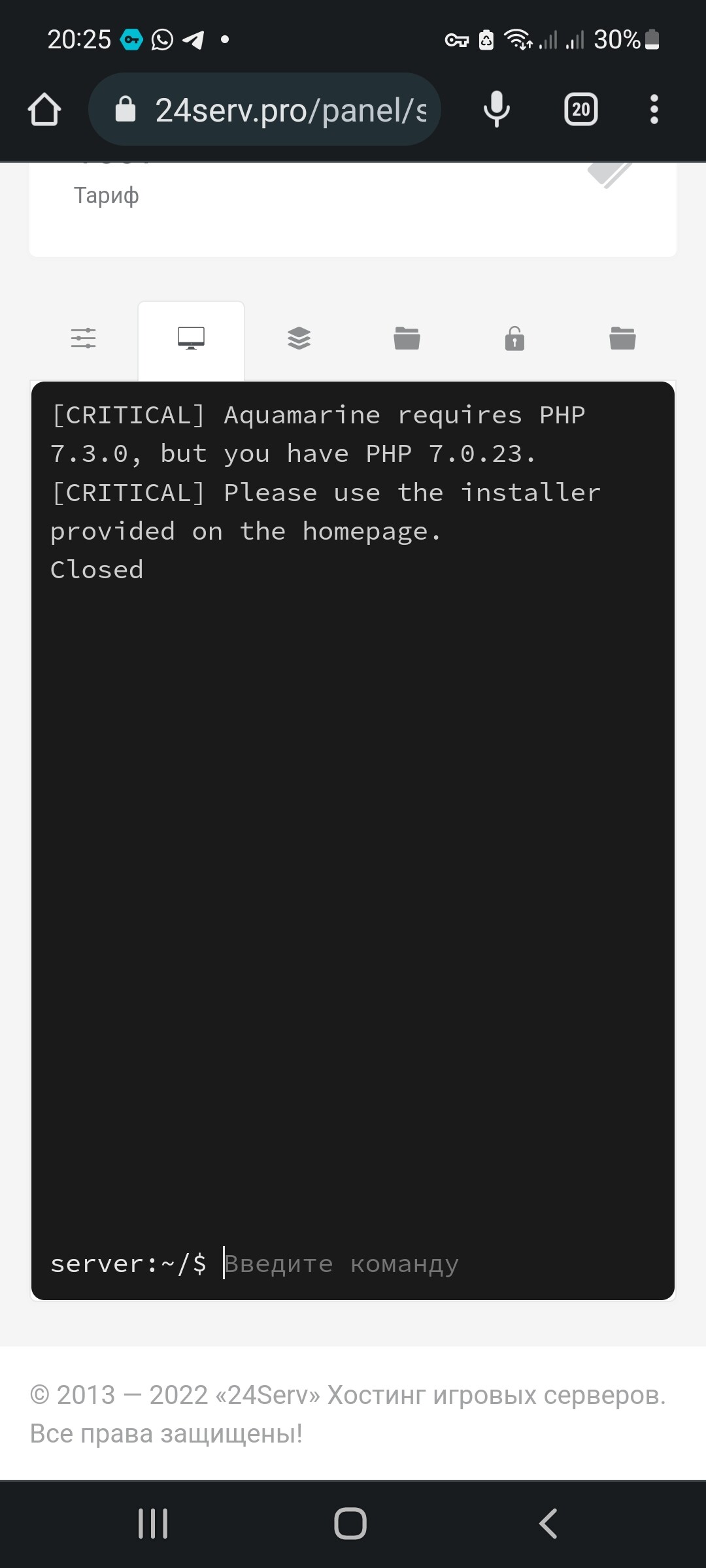 Ядро поддерживает PHP 7.3, но ты используешь PHP 7.0