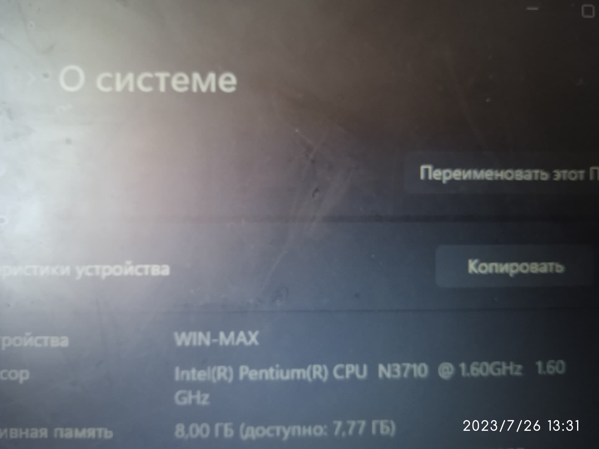 Покажи характиристики ноутбука