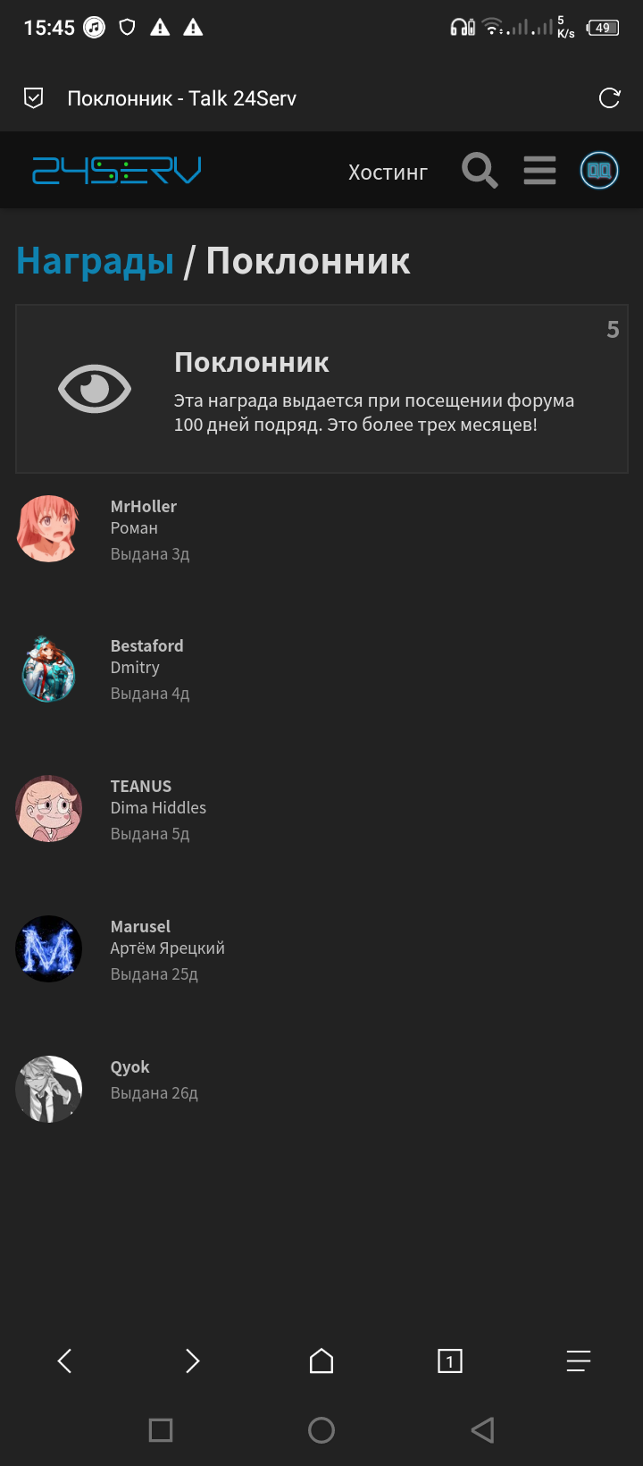 Чтобы получить ачивку надо реально 100 дней подряд заходить на форум
